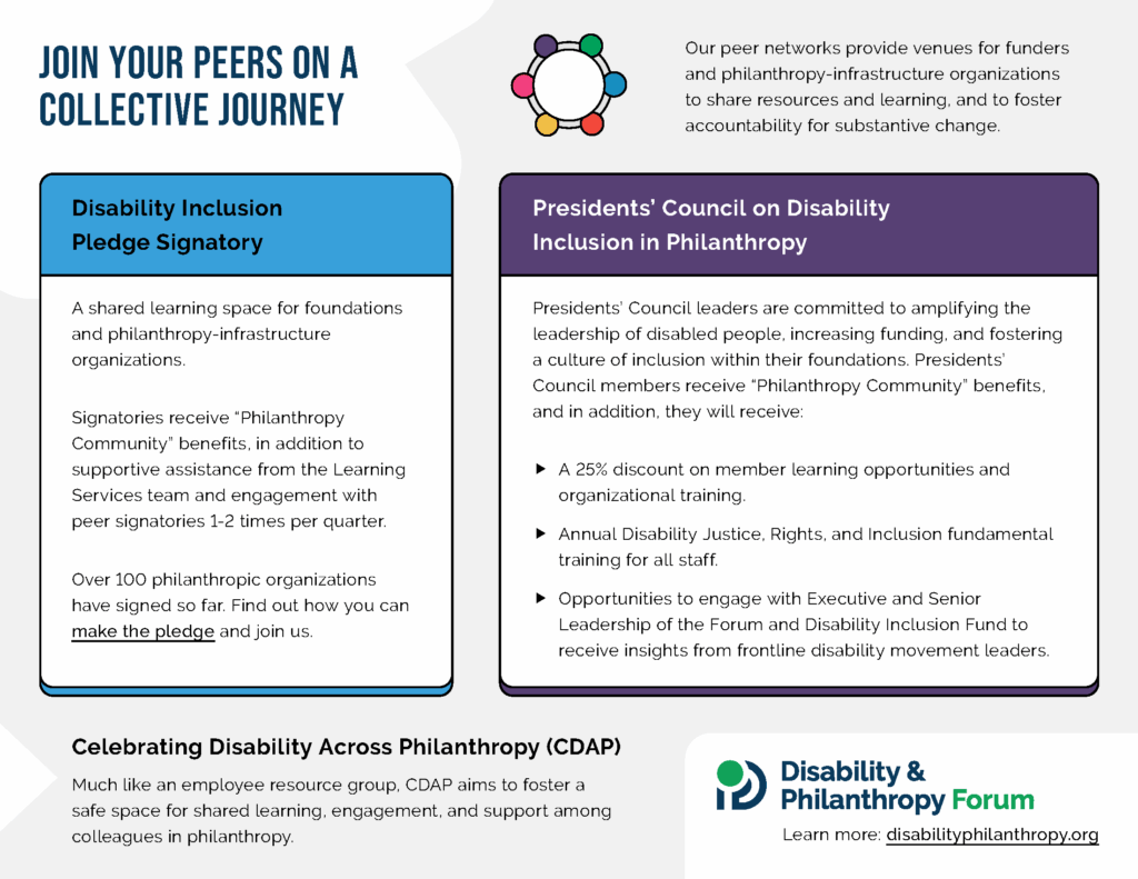 The Disability & Philanthropy Forum is transforming philanthropy by leading a fundamental shift in how funders understand their role in addressing ableism and ensuring that disabled communities receive the resources they deserve. Disability justice is not an isolated issue; it is vital to racial, economic, and gender justice. At a time when disability rights, inclusion, and justice are being challenged and undermined, philanthropy cannot remain silent. We are more than just a resource hub; we are a collective force that ensures funders not only protect the rights of disabled individuals but also recognize how disability justice enhances all social justice movements. Join us today—because a just and inclusive sector isn’t optional, it’s necessary.